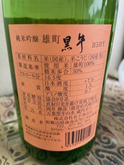 黒牛 純米吟醸 雄町 720ml 日本酒 瓶燗急冷火入れ 令和7年 名手酒造 R5BY 辛口 食中酒に最適 万葉黒牛の里 紀州名水50選
