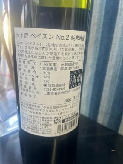 天下錦 BASIN2 純米吟醸 720ml ベイスン 日本酒 令和7年 福持酒造場 三重の酒 名張 安部田 全量山田錦 ※クール便指定
