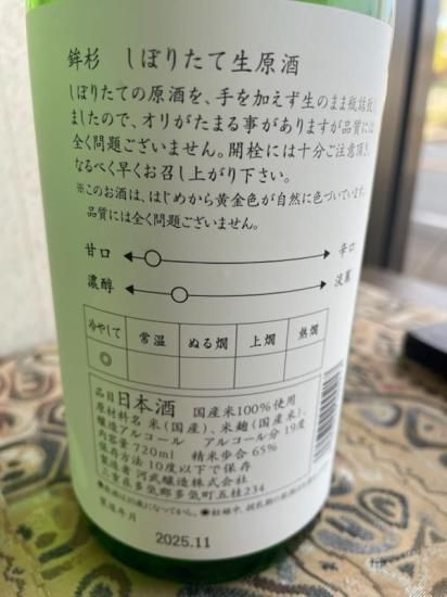 鉾杉 しぼりたて生原酒 720ml 新酒 令和7年醸造 2025BY 日本酒 限定酒 河武醸造 三重の酒 ※クール便指定